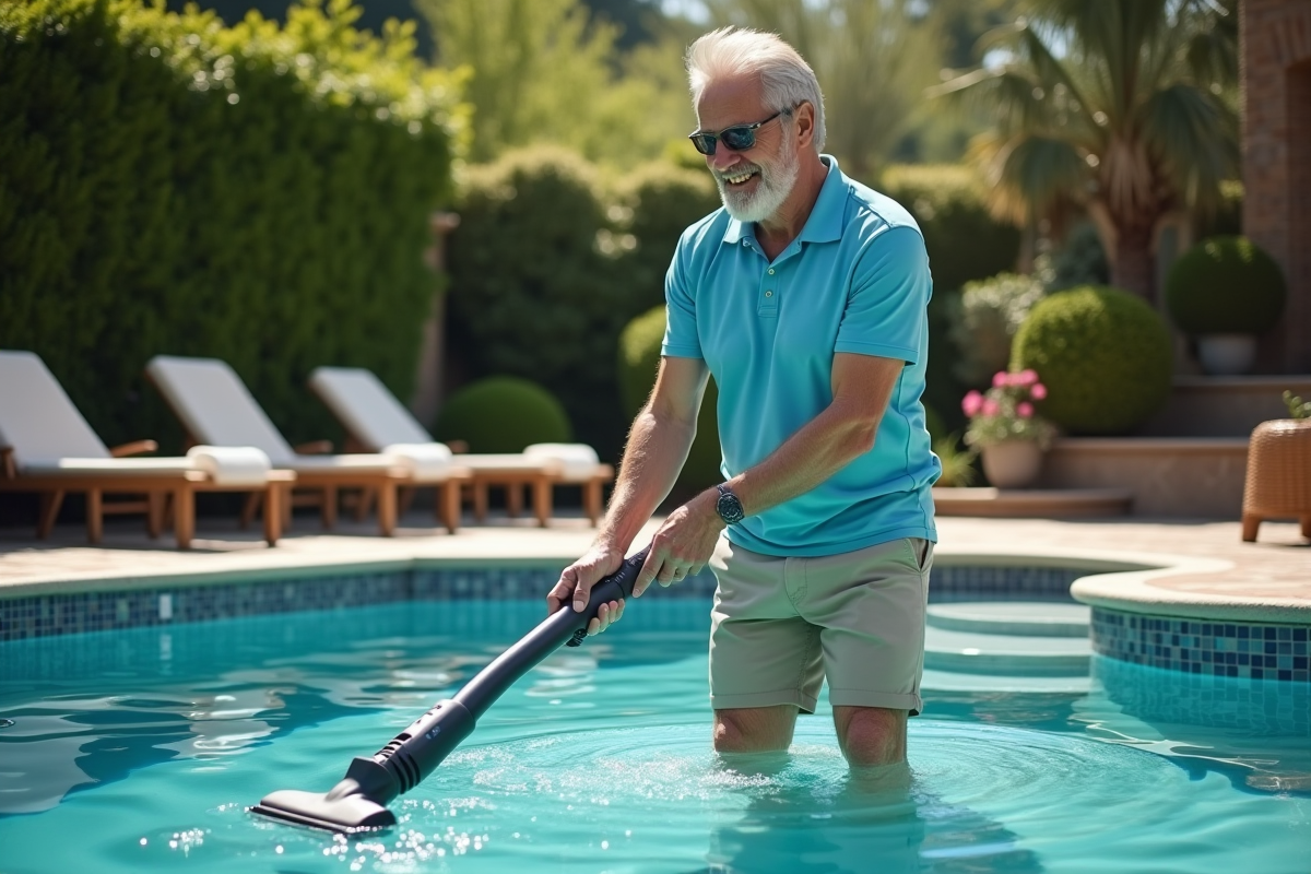 Avant de commencer, arrêtez la filtration : cela évite de disperser les résidus dans toute l’eau. Branchez ensuite l’aspirateur sur la prise balai ou le skimmer, puis avancez doucement, secteur par secteur. Ce travail précis retire efficacement les algues tout en préservant la qualité de l’eau.